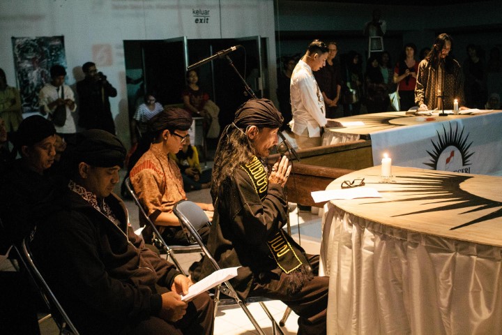 In collaboration with Nindityo Adi Purnama and Agnesia Linda Mayasari performed for Seni Indonesia Berkabung at Koesnadi Hardjasoemantri Cultural Center, Yogyakarta - Indonesia. This participatory art performance made comments on the issue of a corrupt government.